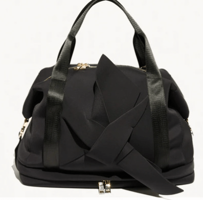 This is the ultimate gym bag. While it may hurt your wallet a bit, I promise this bag is worth every penny. The durability of this bag is unmatched and it has so many amazing features. The bow in the front pulls forward to reveal a hidden yoga mat pocket, the bottom section is fully lined and fits your sneakers and and then some. The main pocket has multiple packets including one big enough for your laptop. There is even a key ring attached to the inside so that you never lose your keys in your bag. Finally this bag features the prettiest gold hardware and adjustable cross body strap as well as another pocket in the bag to keep necessities. So here I am AGAIN telling you this bag is WORTH. EVERY. PENNY.